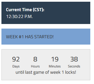 NOTE: Sometimes the NFL changes games and game times for better viewer ratings. If the Commissioner is unable to adjust the conclave times to match the "new" NFL times, please base your predictions on what you see published on the site.