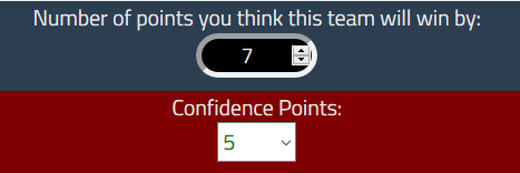 - For the Game of the Week, each player will predict who they think the winner of the game will be, the final score point differential, and select a number from 0-5 to indicate your confidence level in your selection.