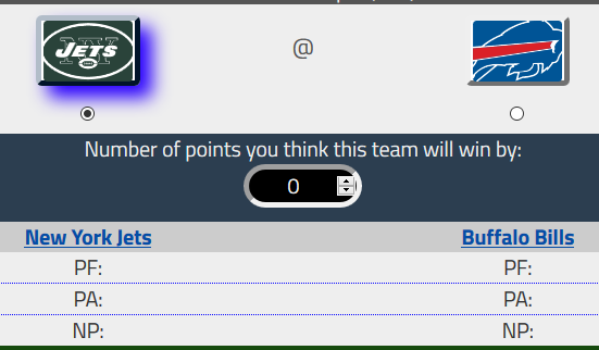NOTE: If you select a team that doesn't win during the game of the week, that number of points will be deducted from your total points.