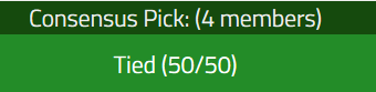 - If only three people in their respective division selects the winner: 2 additional points will be awarded to all three members.